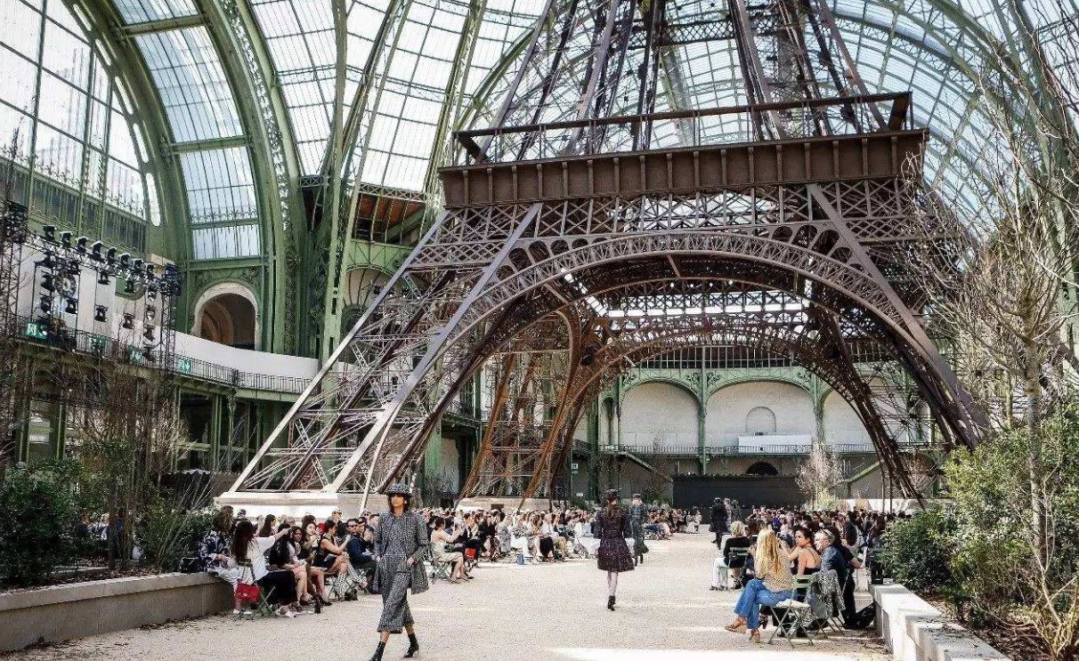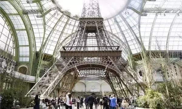 他在巴黎大皇宫的玻璃穹顶下建起一座CHANEL的埃菲尔铁塔,塔身直达宫顶,这座铁塔作为呈现2017/18秋冬高级定制服系列的舞台。