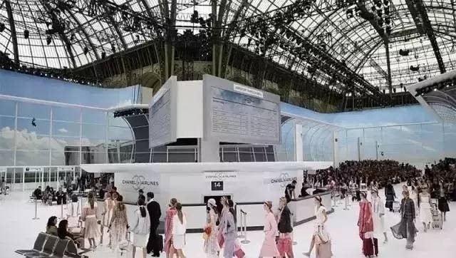 2016年春夏大秀,他就把大皇宫的秀场布置成了机场,拖着箱包登机的